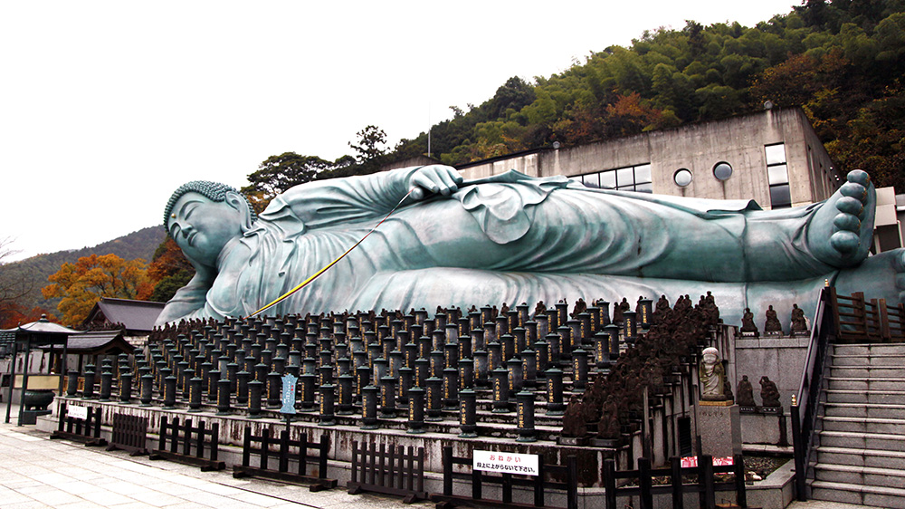 南藏院距離福岡市區並不遠,從博多搭乘JR電車最快只需要二十多分鐘就可到達,可謂是篠栗四國中交通最便利的。寺院最廣為人知的是一尊釋迦涅槃像。佛像為青銅鑄造,全長41米、高11米、總重約300噸,於1995年5月建成,是現今世界最大的青銅臥佛像。常年來,南藏院一直向緬甸、尼泊爾等東南亞地區的兒童無償提供藥品、醫療用品和文具。作為答謝,1988年緬甸佛教會向南藏院分別贈送了佛陀以及阿難、目犍連二尊者的舍利。釋迦涅槃像就是為了供奉這三枚珍貴的舍利而建。