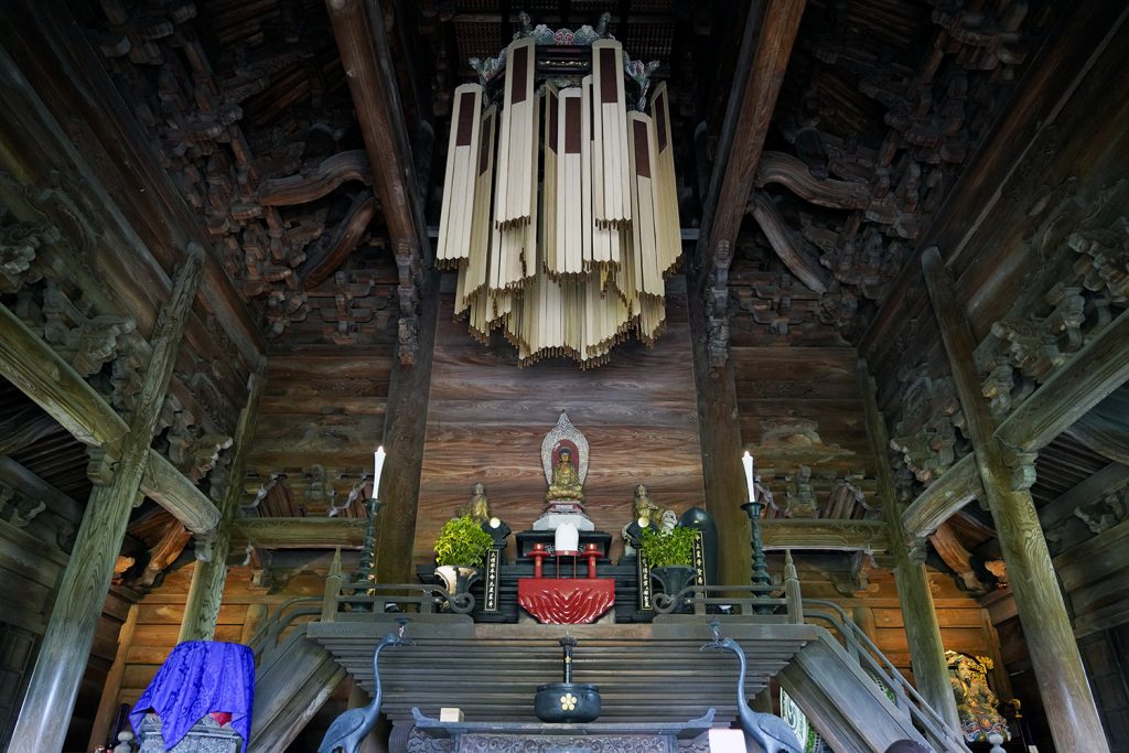佛殿建於萬治二年(1659),殿內正中須彌壇上供奉著從中國傳入的明代釋迦如來與文殊、普賢坐像,像高分別爲72.5釐米和75釐米,「華嚴三聖」像上方懸掛有絲織寶蓋。殿堂西南供奉震旦初祖菩提達摩和日域曹洞鼻祖道元禪師;西北供奉傅大士和大權修理菩薩。整個佛殿全部由櫸木建造,主柱使用的櫸木更是有600餘年樹齡。佛殿之上鋪設的是總重達47噸的鉛瓦,將其放眼日本也是極為罕見的存在。