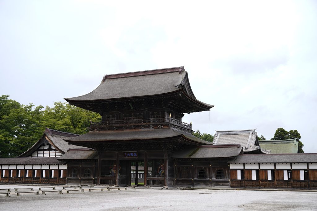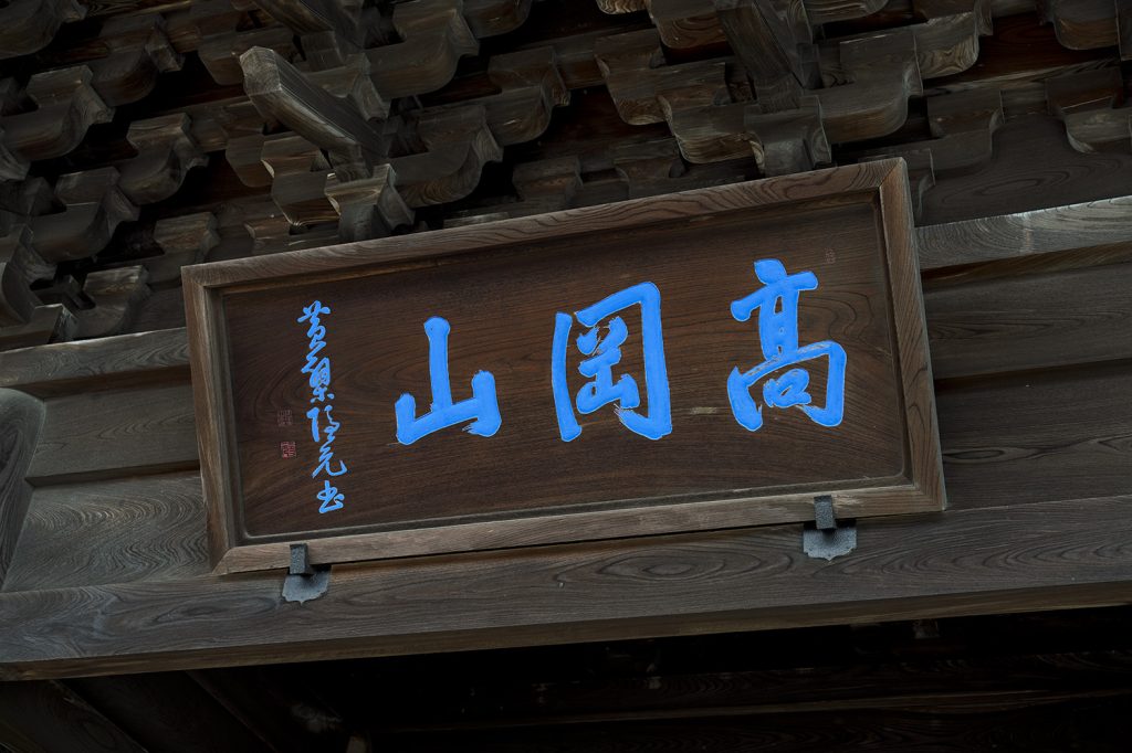 寺院山門始建於正保二年(1645),高18米;一層入口兩側各有一尊高3.4米的金剛力士像,二層供奉釋迦牟尼與十六羅漢。現有山門重建於火災後的1820年,匾額上是由明僧黃檗隱元禪師揮毫手書的「高岡山」三個大字。